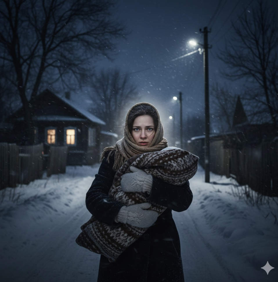 На снегу лежит младенец. Он укутан в тёплое одеяло, но девушка удивилась: «Каким же надо быть жестоким человеком, чтобы бросить ребёнка на улице в мороз». Она схватила несчастное создание и, прижав его к себе, побежала в дом.